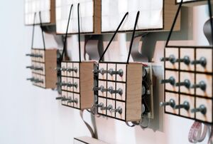 The Mark II is a functional convolutional artificial neural network — an artificially-intelligent algorithm that learns to distinguish letters. The machine is built in the shape its own diagram (as drawn by a researcher during its design). Mathematical precision in code contrasts with inevitable imperfections owed to the human body that manufactured the object by hand in natural materials.